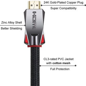 4K HDR HDMI Cable, HDMI 2.0, Supports 4K 60hz(Dolby Vision, HDR10, HDCP 2.2) 1440p 120hz and E-ARC, Ibirdie High Speed Ultra HD Cord, 24AWG