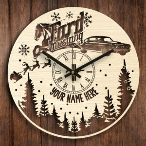 Customize Your Name With Christmas Ford Mustang Wooden Wall Clock CL003