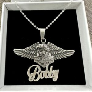 Hi there!! Are you looking at our Harley-Davidson Necklace. Our custom designs offer a personal touch that’s perfect for any look. This Necklace for Women is made with high-quality High Quality 925 Sterling Silver and is sure to become a staple in your wardrobe. The HLD Emblem on the necklace makes it a perfect item for any Harley-Davidson Lovers.