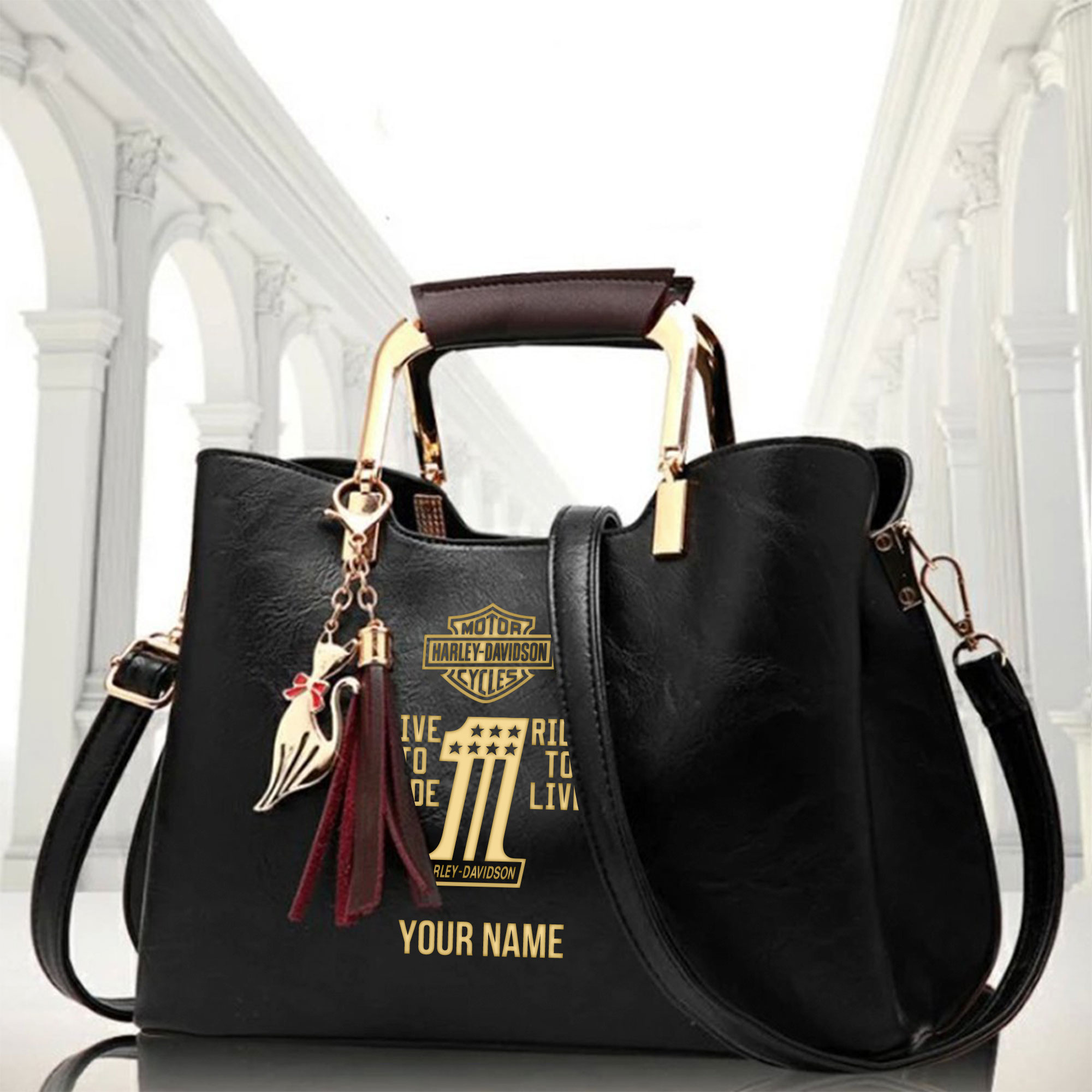 Hi there!! Are you looking at our Harley-Davidson handbags. These handbags are unique, made with love, and they are perfect accessories for your outfit. The Shining Harley-Davidson Emblem on the purse makes it a perfect item for any Harley-Davidson Lovers and Ladies.
