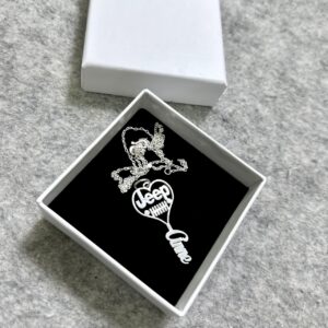 Hi there!! Are you looking at our Jeep Necklace. Our custom designs offer a personal touch that’s perfect for any look. This Necklace for Women is made with high-quality High Quality 925 Sterling Silver and is sure to become a staple in your wardrobe. The JPP Emblem on the necklace makes it a perfect item for any Jeep Lovers.