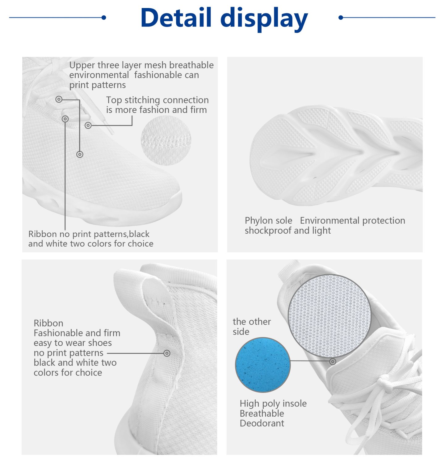 - Made of mesh fabric, breathable mesh upper helps you stay cool and comfortable.