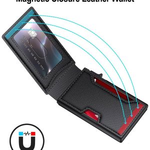 MATERIALS: High-quality PU leather, durable metal pop-up mechanism, and RFID-blocking technology to keep your cards safe and secure.