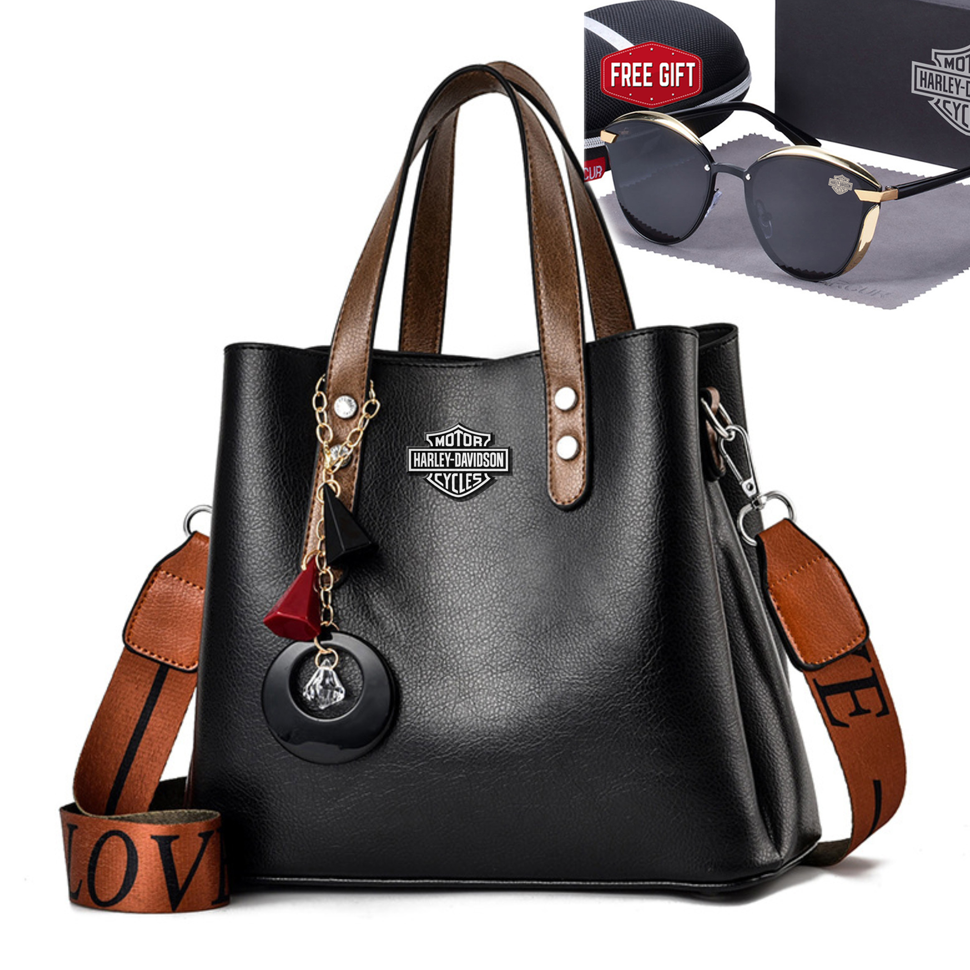 Harley Davidson Luxury Leather Women Handbag with Free Polarized Glasses Gift