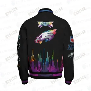 Hi there!! Are you looking at our Philadelphia Eagles Bomber Jacket. These bombers Jacket are unique, made with love, and they are perfect accessories for your outfit. The Philadelphia Eagles Emblem on the shoes makes it a perfect item for any Philadelphia Eagles Lovers.