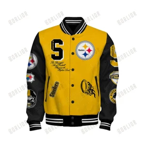 Pittsburgh Steelers Button Down Baseball Varsity Bomber Jacket Version SW006